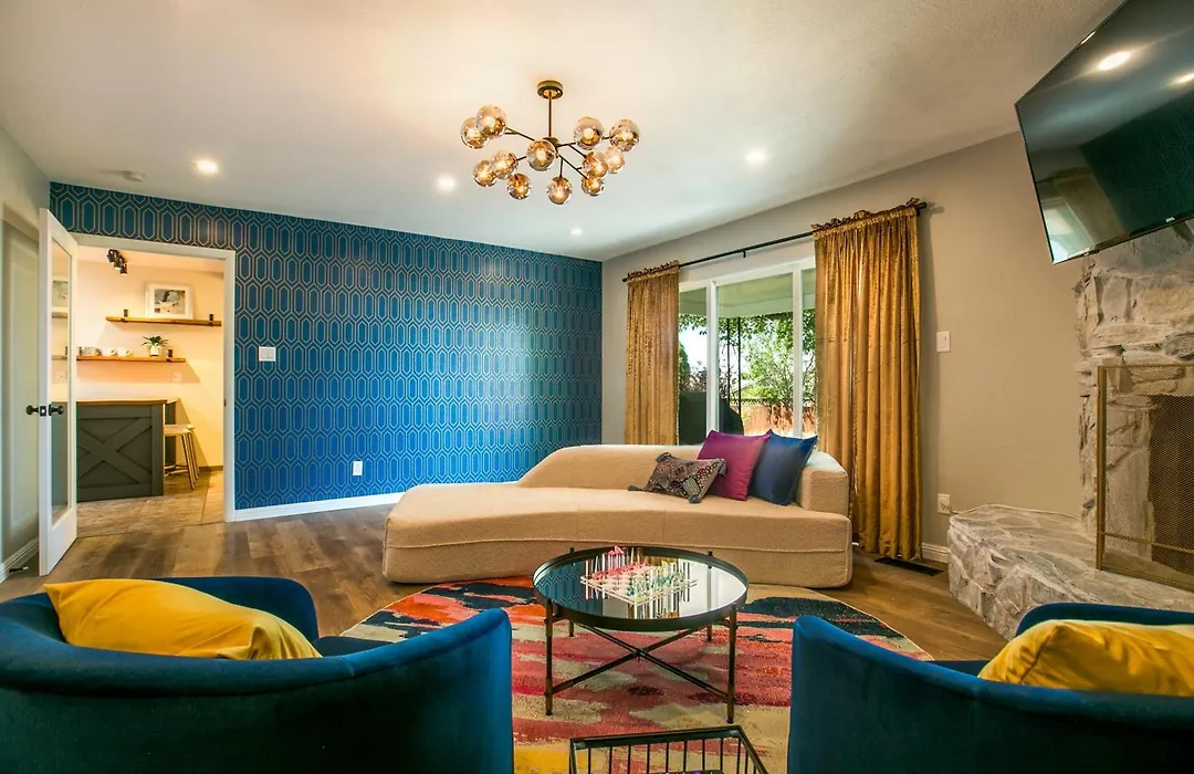 Oasis Retreat - Hot Tub - King Bd - Fire Pit - Games - Near Golf - 4 Bdrm - Sleeps Up To 12 Villa includes a patio and a seating area and is fully equipped with an air conditioner, as well as a flat-screen TV with satellite channels. Along with a sofa set and a writing table, the interior features a fireplace. The villa comes with a bathroom with a separate toilet, a bath, and a shower. Also, guests can enjoy the convenience of guest toiletries and towels.